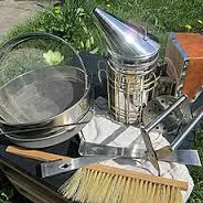 из меди, мех - с кожзаменителя. Имеет стандартную форму. Простой и