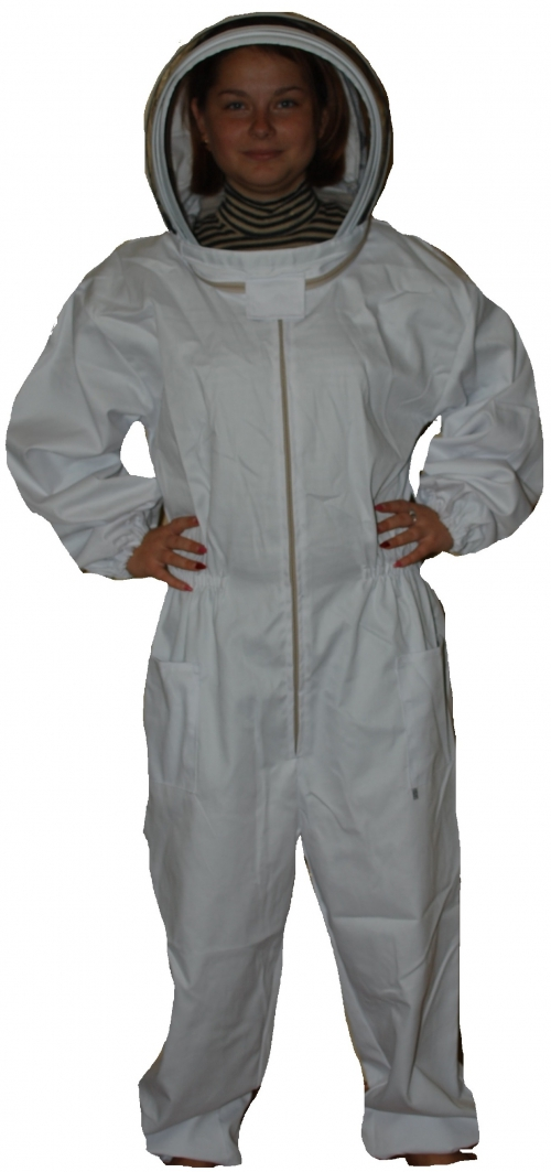 Комбинезон вместе с лицевой сеткой европейского образца, которая отстегивается молнией, тюль опускается вниз при расстегивании. Рукава, низ брюк и талия отделаны резинкой. Ткань:очень плотная 100% хлопок (уплотненный)