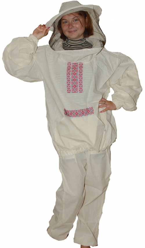 Костюм (брюки + куртка + лицевая сетка пристегивается молнией к куртке).По бокам, на рукаве и